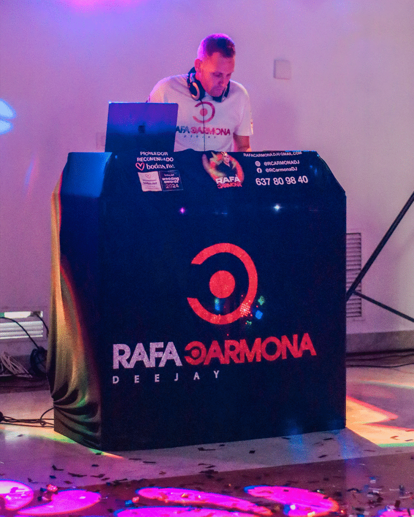 El día de la celebración, Rafa está presente de principio a fin, adaptando la música en tiempo real según el ambiente, energía de los invitados y momentos inesperados. Su profesionalidad permite que resuelva cualquier cambio con creatividad, manteniendo siempre el foco en que la fiesta sea el reflejo de lo que la pareja desea recordar.